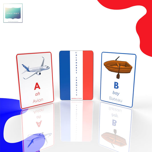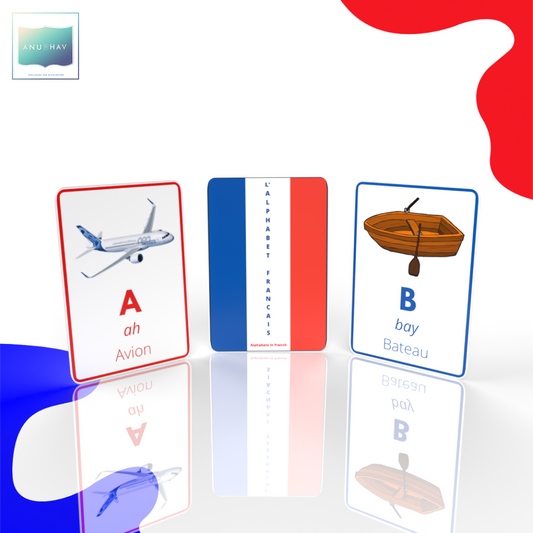 French Alphabet Flashcards – Learn with Illustrations, Pronunciations & Examples (Pack of 26)