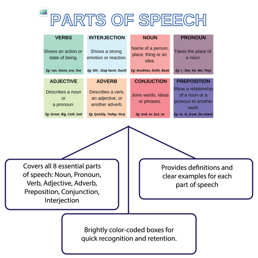 Parts of Speech – English Grammar Learning Chart Poster