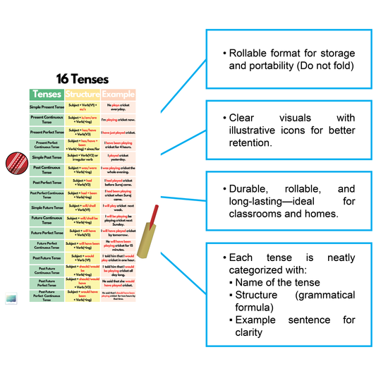 16 Tenses – English Grammar Learning Chart Poster