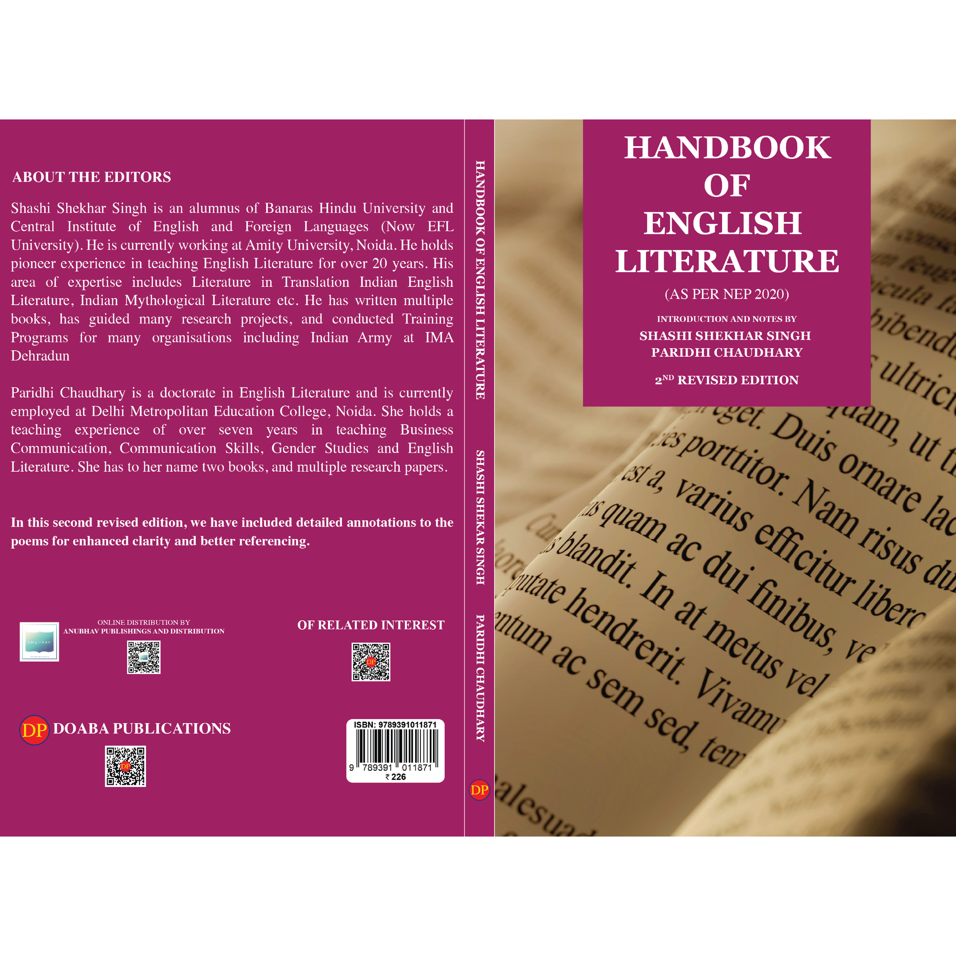 Handbook of English Literature (As per NEP 2020) is a concise yet comprehensive guide for students, educators, and literature enthusiasts, crafted to meet the evolving academic requirements of the New Education Policy (NEP) 2020. Edited by renowned scholars Shashi Shekhar Singh and Paridhi Chaudhary, this second revised edition provides detailed annotations, enriched clarity, and enhanced referencing, making it an indispensable resource for understanding key literary concepts and works.