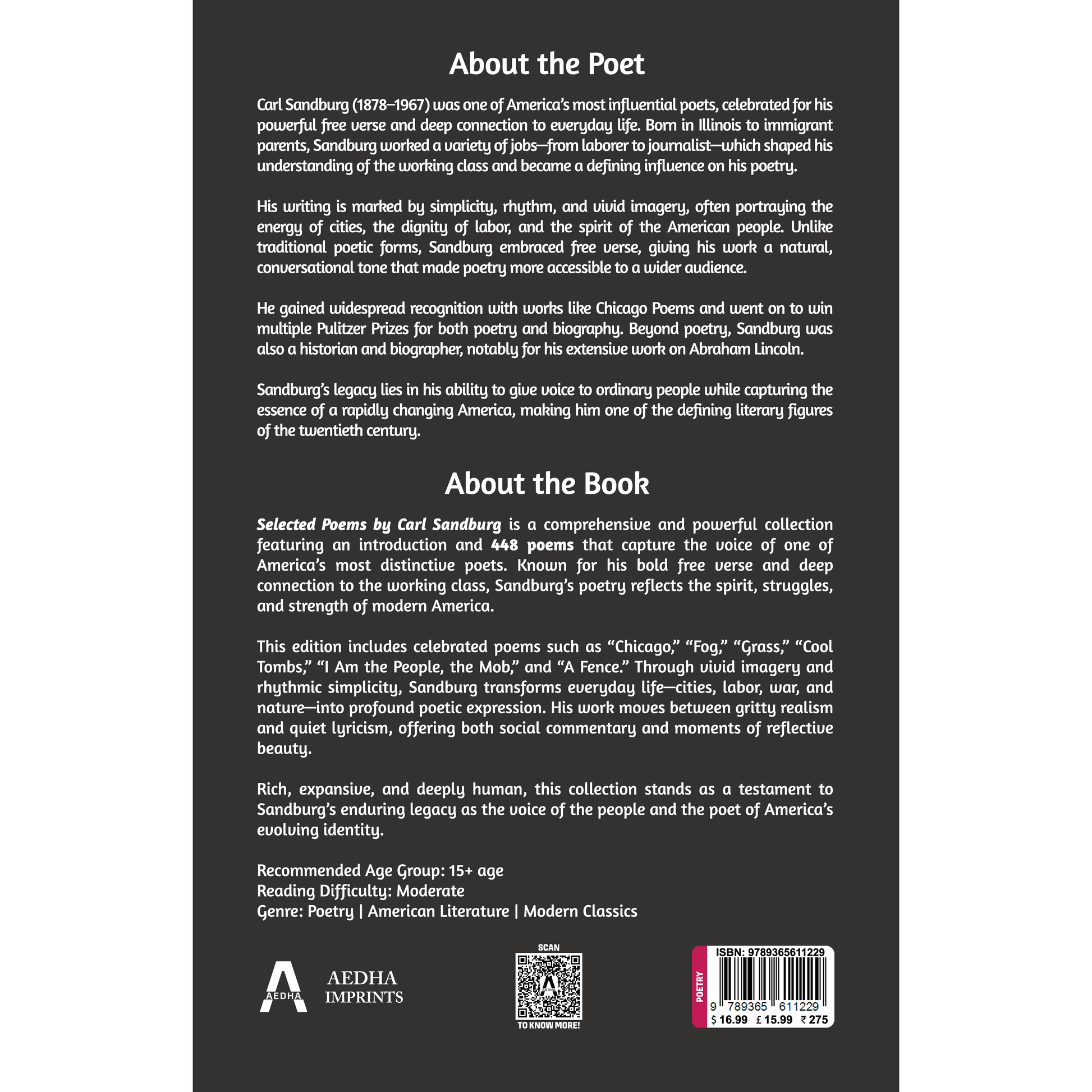 Featuring celebrated works such as Chicago, Fog, and Grass, Sandburg blends realism with lyrical beauty and social insight.
